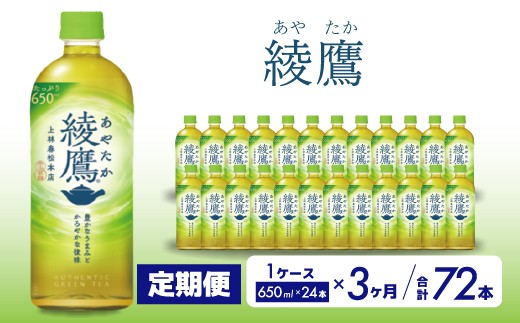 - 【3か月定期便】綾鷹 PET 650ml×24本(1ケース) お茶 緑茶 日本茶 ペットボトル 箱買い まとめ買い 備蓄 014053
