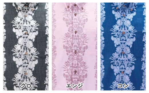かりゆしウェア 紳士用 ハイビスカスストライプ柄Lサイズ×コン