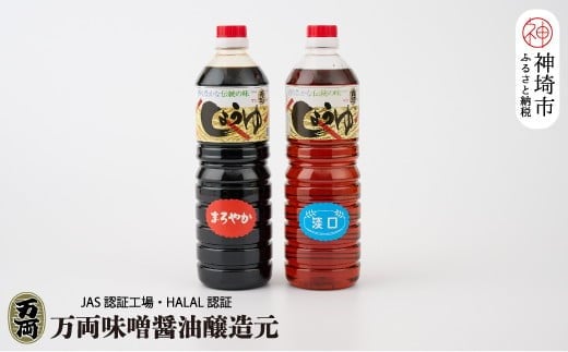 - 万両の本醸造醤油とJAS標準うすくち醤油(1L2本箱)(A-2) 【九州 甘口 醤油 本醸造 まろやか おすすめ うすくち 1L】(H016181)