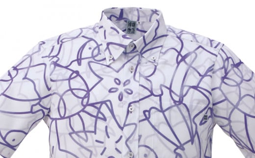 - 紳士用かりゆしウェア クマノミと亀とヒトデ柄 ライラック【Mサイズ】S1829