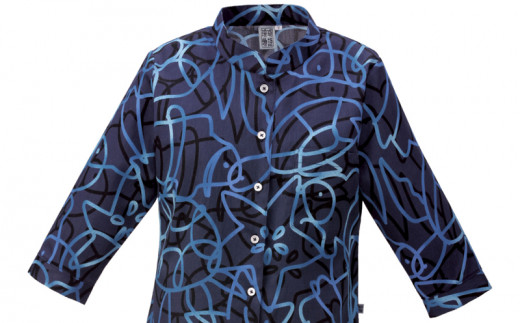 レディースかりゆしウェア クマノミと亀とヒトデ柄 コン 7号 S1129