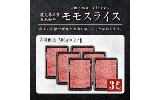 <定期便・全3回>鹿児島県産黒毛和牛モモスライス(計3kg・1kg(500g×2P)×3回) 黒毛和牛 モモスライス すき焼き【ナンチク】T20-v01