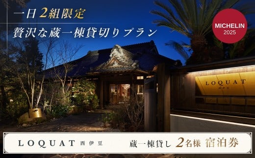 - ロクワット 西伊豆 LOQUAT 土肥温泉 蔵一棟貸し 露天風呂付 客室 宿泊券 2名様(1泊2食付き) ※1日 2組様 限定【 静岡県 伊豆市 ペア カップル 宿泊 温泉 温泉宿 旅行クーポン 静岡 伊豆 蔵 限定 贅沢 ジェラテリア ベーカリー ラグジュアリー 名家 ⽩枇杷 地産地消 】 60-003