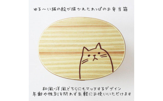 曲げわっぱ弁当箱【650ml】 ねこ ナチュラル 日本国内仕上げ 天然木 1段