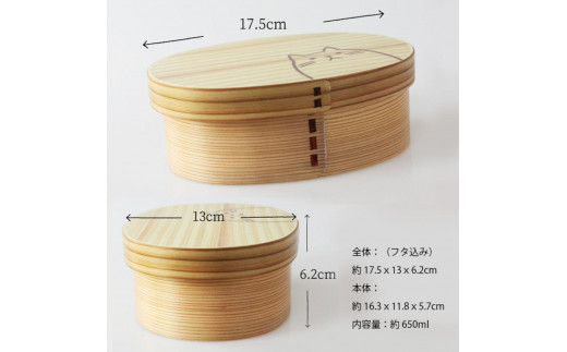 - 曲げわっぱ弁当箱【650ml】 ねこ ナチュラル 日本国内仕上げ 天然木 1段