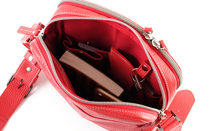 牛革 ショルダーバック縦型 赤