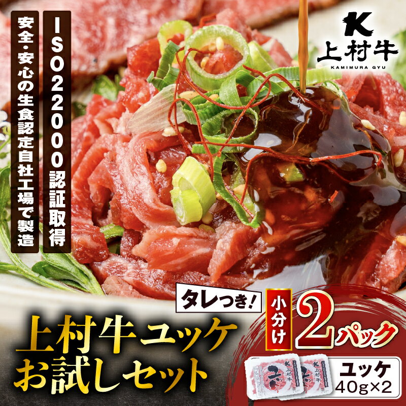 - 【ふるさと納税】 上村牛 ユッケ 2P お試し セット 牛 生食 生肉 お試しセット タレつき お試しサイズ 自社ブランド ブランド牛 あっさり 肉肉しい おつまみ 国産 カミチク ふるさと納税 鹿児島 鹿児島市 おすすめ ランキング プレゼント ギフト