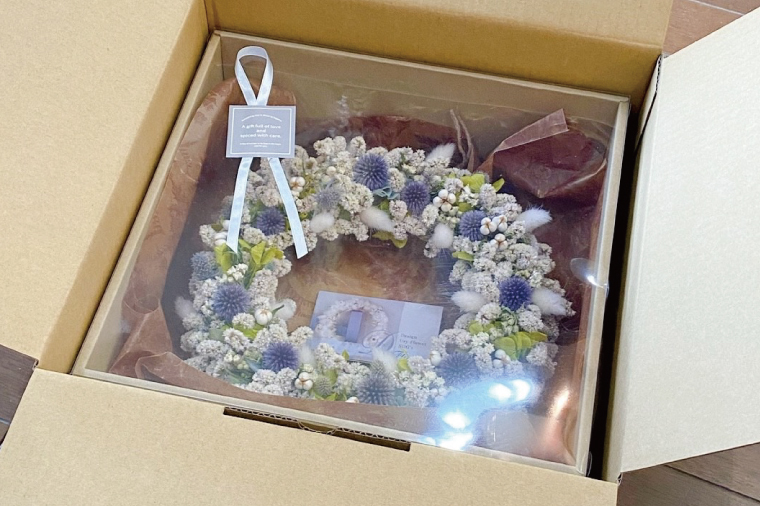 ルリ玉アザミのドライフラワーリース【インテリア おしゃれ 壁飾り プレゼント お花 ギフト ナチュラル ロスフラワー】(KW-1)