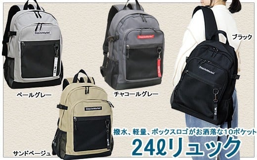 - 撥水、軽量、ポケット多数、ボックスロゴがお洒落な 10ポケット 24L WZ013