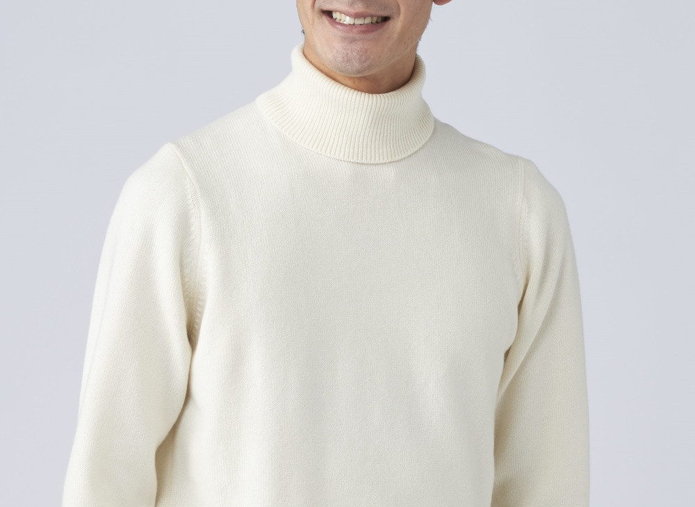 日本製 カシミヤ100% タートルネック 白 Mサイズ [2590]