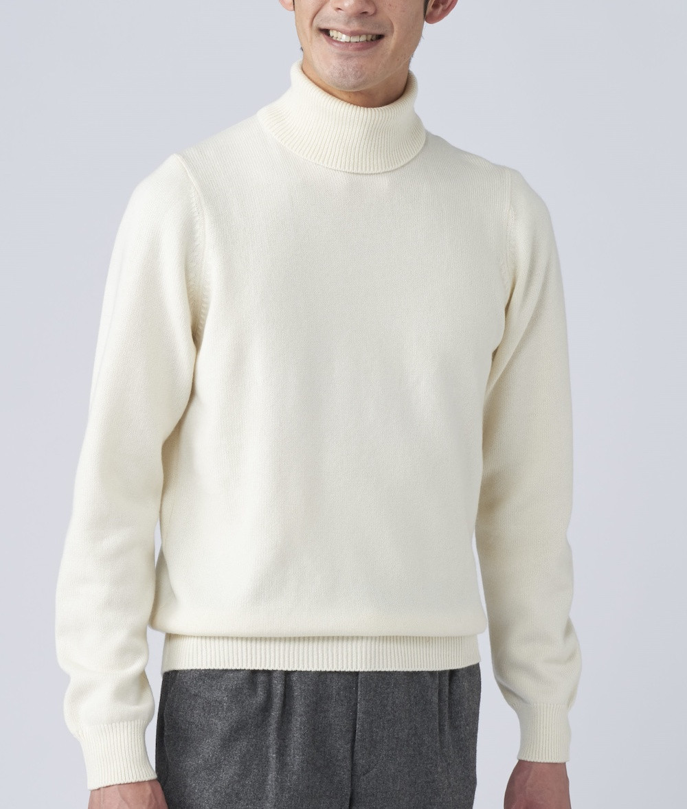 - 日本製 カシミヤ100% タートルネック 白 Mサイズ [2590]