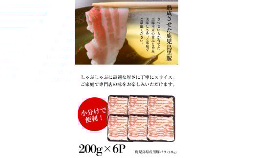 鹿児島県産 黒豚 しゃぶしゃぶ バラ 計1.2kg(200g×6P)冷凍 小分け 国産 鹿児島県産 黒豚 バラ肉 スライス しゃぶしゃぶ【A-1606H】