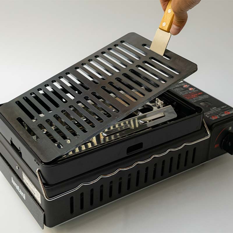 - 【ふるさと納税】極厚 バーベキュー 鉄板 網 タイプ (180mm × 280mm 板厚 6mm) スクレーパー付 No.11【Free works】アウトドア キャンプ BBQ 鉄板焼き 焼肉 ハンドル付き 送料無料 岐阜県 中津川市 F4N-0005