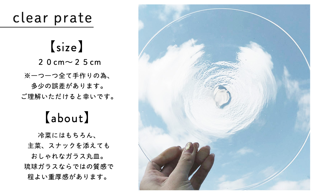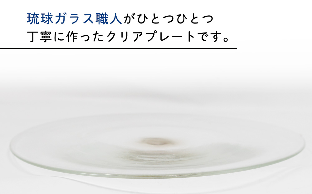 - 【琉球ガラス工房 三ツ星】クリアプレート 1枚 おしゃれ 手作り ガラス サラダ 魚料理 肉料理 スナック 沖縄 伝統工芸 吹きガラス うるま市 シンプル スタイリッシュ