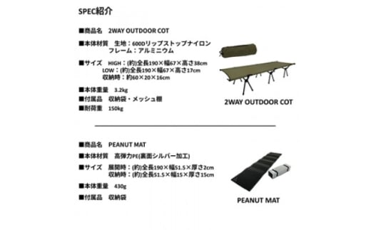 2WAY OUTDOORコット(KHAKI) & PEANUT MAT (BLACK)【1302127】