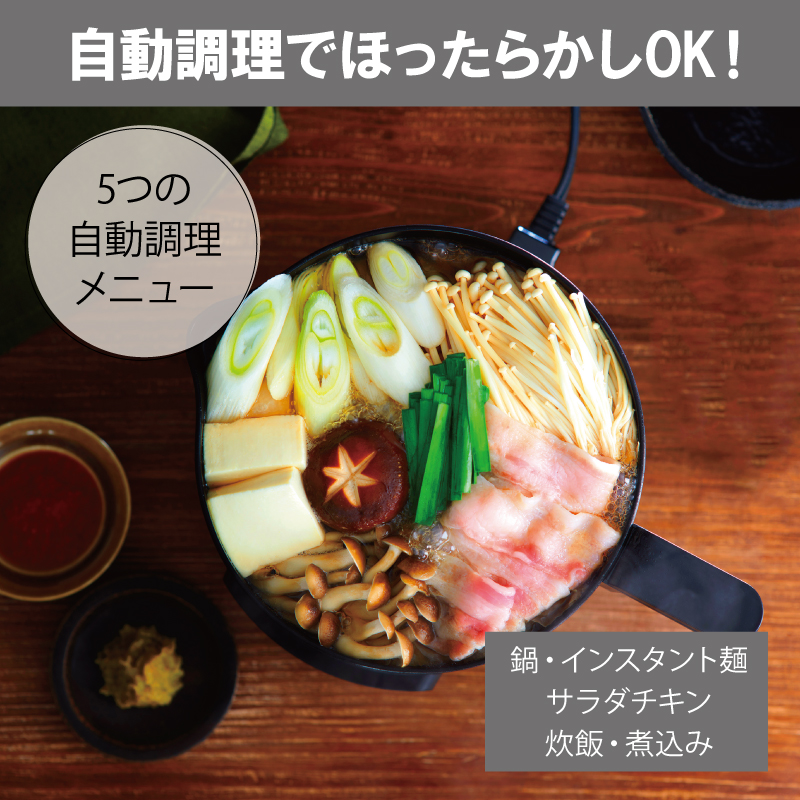 アイリスオーヤマのクッキングケトルは、湯沸かしだけでなく、ちょっとしたお鍋や炊飯器としても活躍する多機能な電気ケトルです。1人暮らしにぴったりのサイズで、自動調理や低温調理も可能です。コーヒーやスープ、サラダチキンなど、さまざまな料理を手軽に楽しめます。温度設定は40℃~100℃まで対応し、タイマー機能も搭載しています。アイリスオーヤマのレシピサイトで、さらに多彩な料理に挑戦できます。シンプルでスタイリッシュなデザインが魅力です。