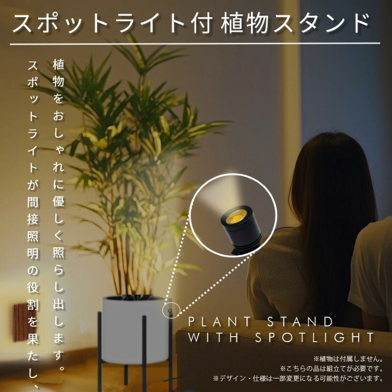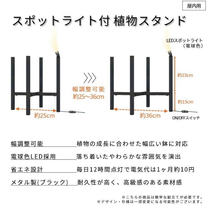 - 【ふるさと納税】インテリアに調和する スポットライト 付き 植物スタンド ブラック 黒 おしゃれ モダン ライト スタンド 幅調整可能 メタル製 間接照明 省エネ 電球色 LED 屋内 室内 リビング 寝室 玄関 プランタースタンド インテリア 泉佐野市 送料無料