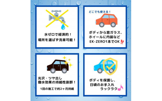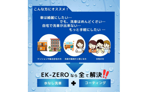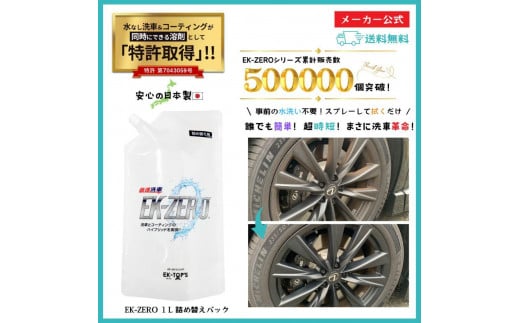 - EK-ZERO 水無しで洗車と撥水コーティング同時施工!EK-ZERO500mlクロスセット×2 + 1L詰替えパック×2