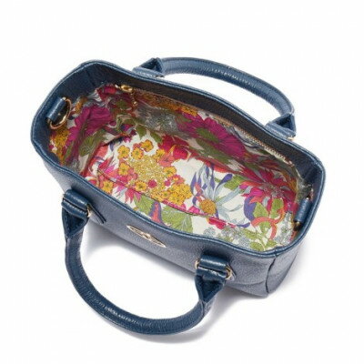 【ふるさと納税】【濱野皮革工藝】ハナエルミニトートショルダー(ネイビー×ゴールド)【1540281】