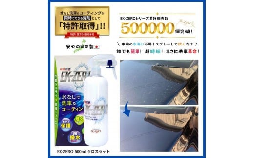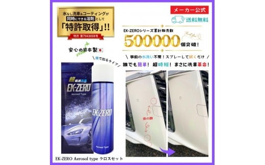EK-ZERO 水無しで洗車と撥水コーティング同時施工!EK-ZERO500mlクロスセット+Aerosol Type