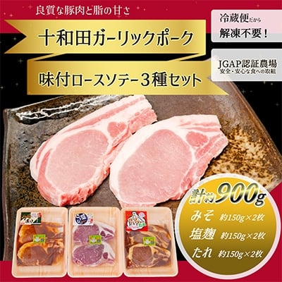 <十和田ガーリックポーク> 味付ロースソテー3種セット(みそ、塩麹、ガリパワーたれ)【1245094】