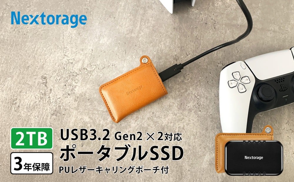 - PUレザーポーチ付き ポータブルSSD 2TB