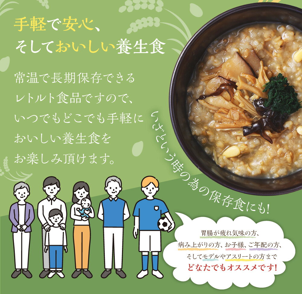 - 【ふるさと納税】【全3回定期便】漢方薬局のこだわりレトルト粥 レギュラー3種セット 6個×3回 計18個 養生粥 鶏塩粥 きのこ粥 おかゆ お粥 レトルト 簡単 添加物不使用 漢方 常温保存 保存食 長崎県 長崎市 送料無料