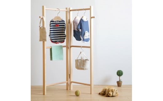 【ペット用】木製 折りたたみ ハンガーラック ナチュラル