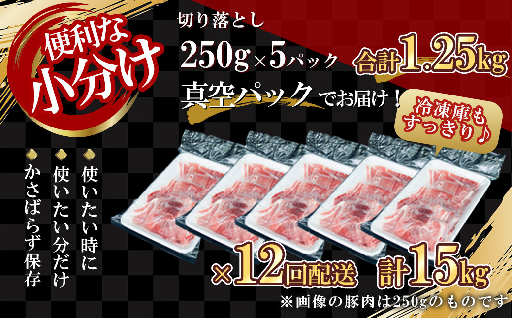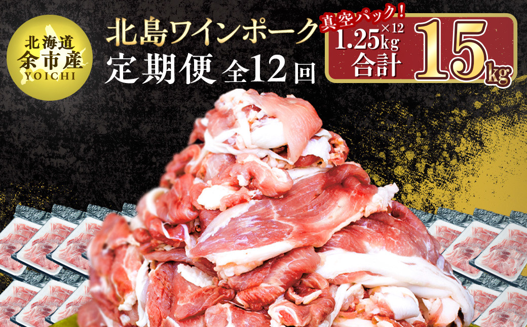 - 【定期便全12回】【農場直送】真空パック 北海道産 北島ワインポーク 切り落とし 1.25kg 総量15kg【小分け】