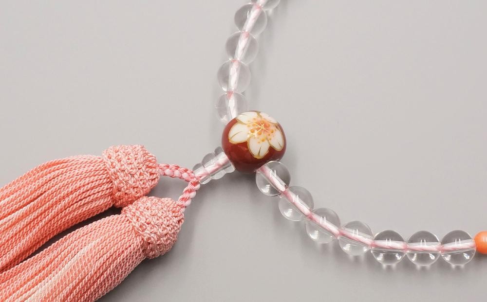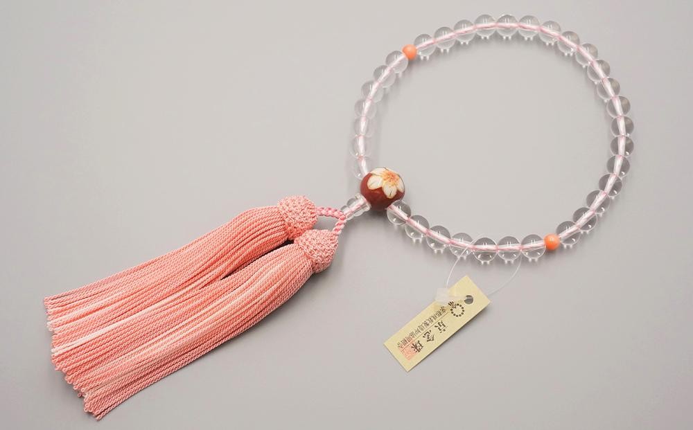 - 【神戸珠数店】〈京念珠〉清水焼 水晶/珊瑚 女性用数珠