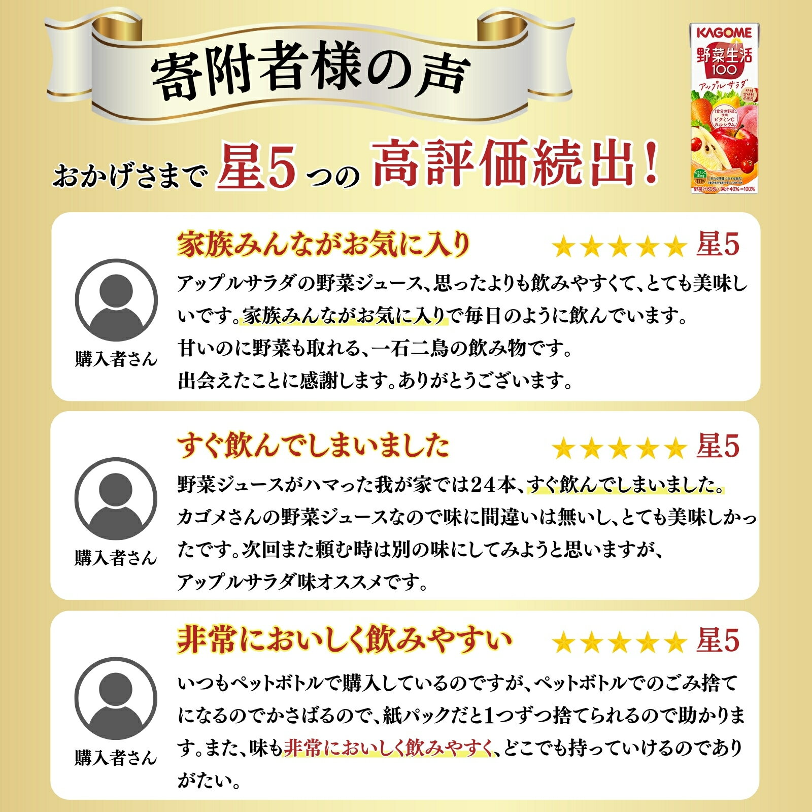 - 【ふるさと納税】【選べる本数 回数】 カゴメ 野菜生活100 アップルサラダ 200ml 本数24本~48本 定期便 2ヶ月~12ヶ月 計24~576本 ジュース 野菜 果実ミックスジュース 果汁飲料 紙パック 砂糖不使用 1食分の野菜 カルシウム にんじん汁 飲料類 ドリンク 野菜ドリンク