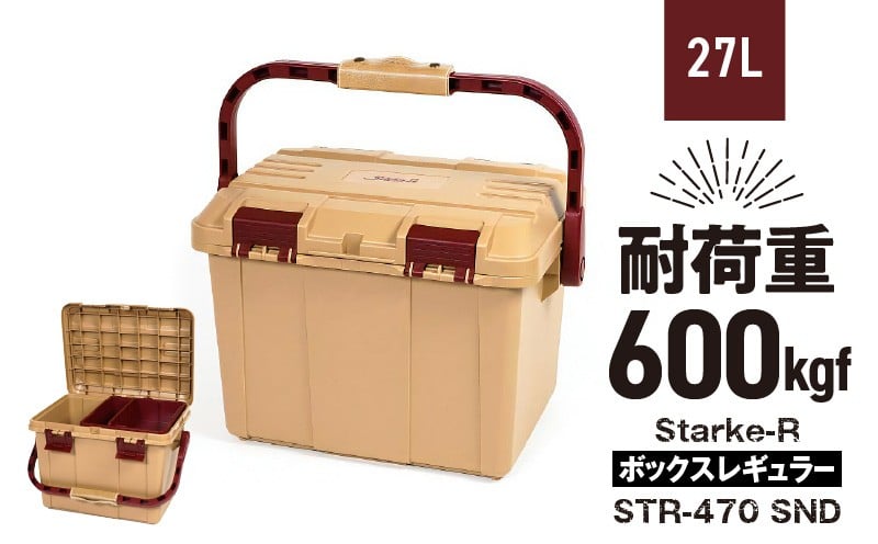 - Starke-R ボックスレギュラー STR-470 SND キャンプ用品をスッキリまとめる 高耐久 ボックス 日本製 Starke-R ボックスレギュラー STR-470 SND 27L アウトドアボックス 防災グッズ 収納 荷物入れ サンドベージュ 椅子 踏み台 両開き構造 仕分けトレー付き キャンプ アウトドア キャンプ用品 アウトドア レジャー 送料無料