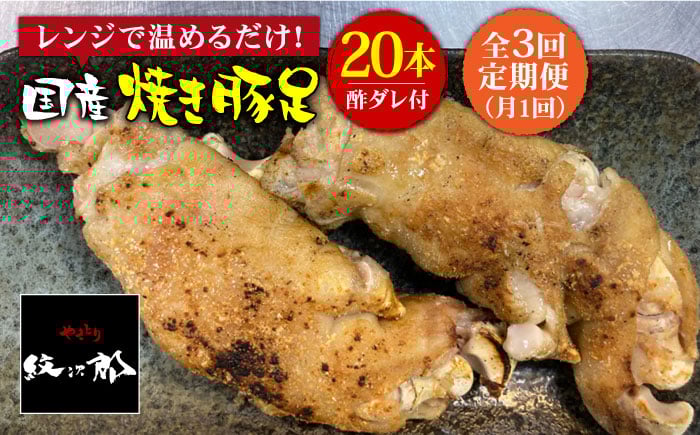 ≪地元人気店の味≫とろけるとんそく【3回定期便】国産焼き豚足たっぷり20本セット×3回 吉野ヶ里町/やきとり紋次郎 [FCJ025]