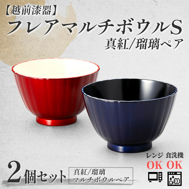 【ふるさと納税】フレアマルチボウルペア S 真紅・瑠璃 食洗機対応・レンジ対応 [B-08414] /食器洗浄乾燥機 ボウル キッチン 料理 調理器具 漆塗り スプーン セット商品 福井県鯖江市