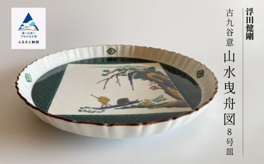 - 九谷焼「古九谷意 山水曳舟図 8号皿」浮田 健剛 お皿 伝統 工芸品