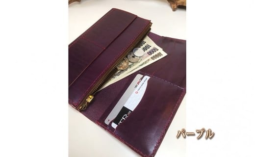 - 本革ルガトショルダーの2つ折り長財布(真鍮ファスナー)ネイビー