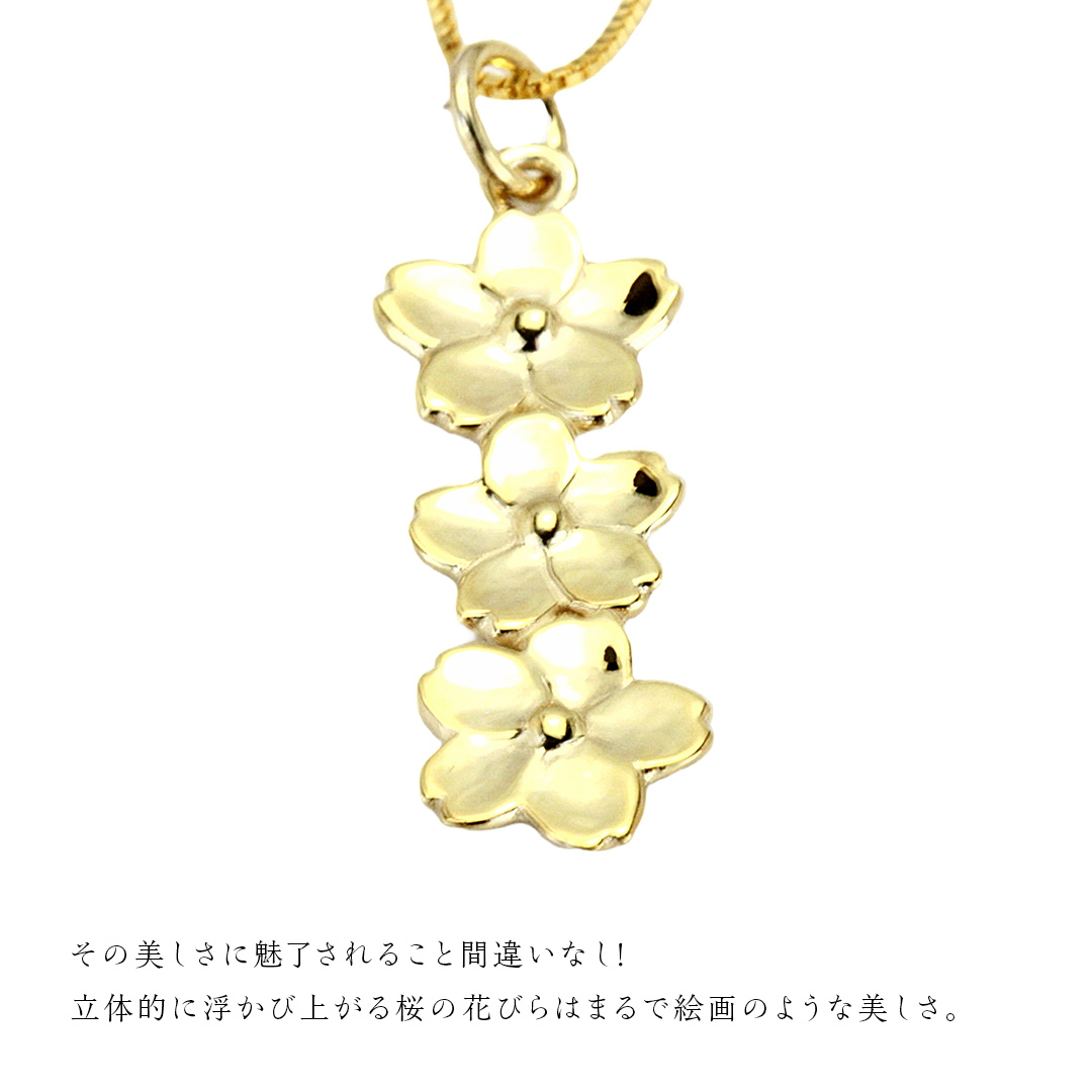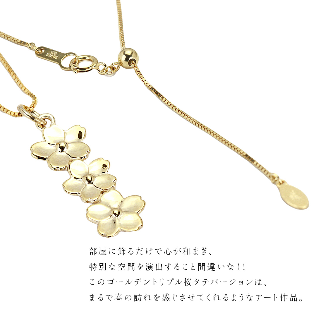 - SV925製 ゴールデントリプル桜 タテバージョン ペンダント アクセサリー ジュエリー ジュエリーマーノ シルバー SV925 桜川市 [AH123sa]