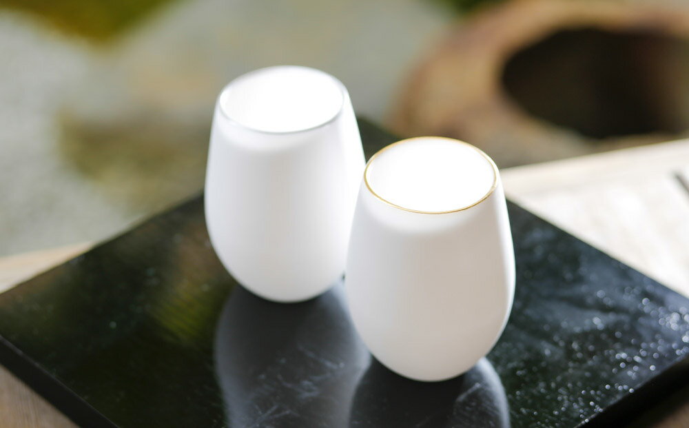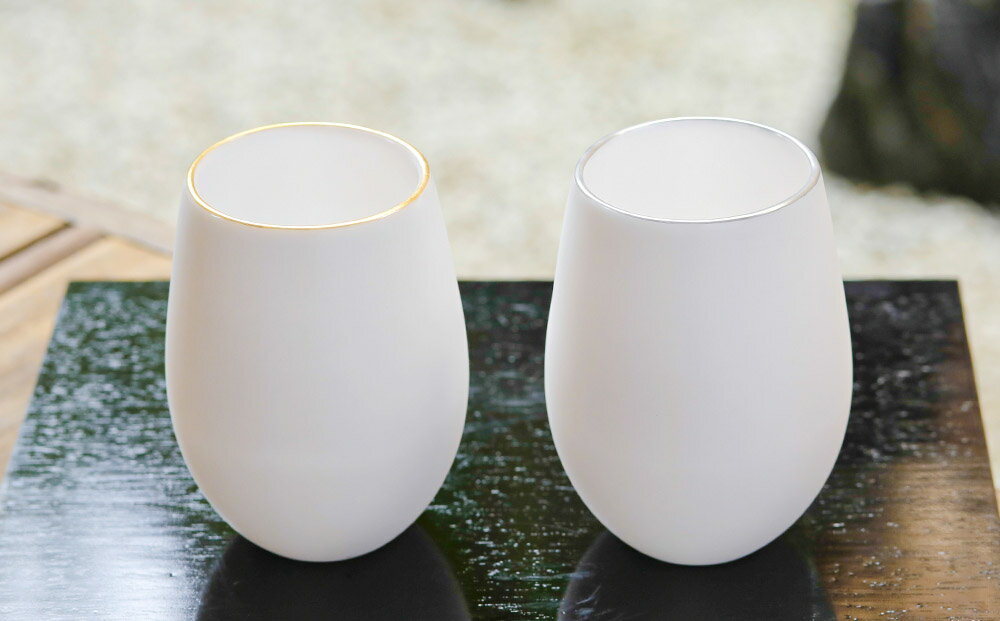- 【ふるさと納税】【陶あん】釉玻璃カップ2個セット(金フチ・銀フチ) | カップ 清水焼 食器 乳白色 2個セット ギフト 贈り物 内祝い ご家庭用 ご自宅用 陶あん 京都府 京都市