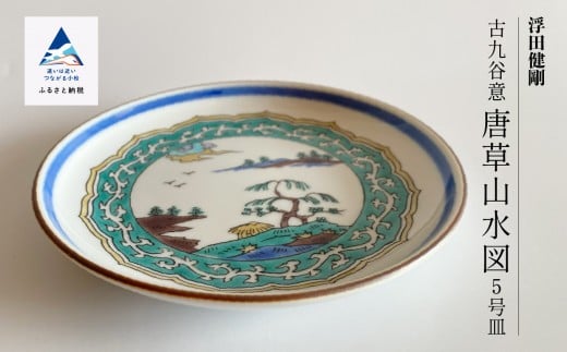 - 九谷焼「古九谷意 唐草山水図 5号皿」浮田 健剛 お皿 伝統 工芸品
