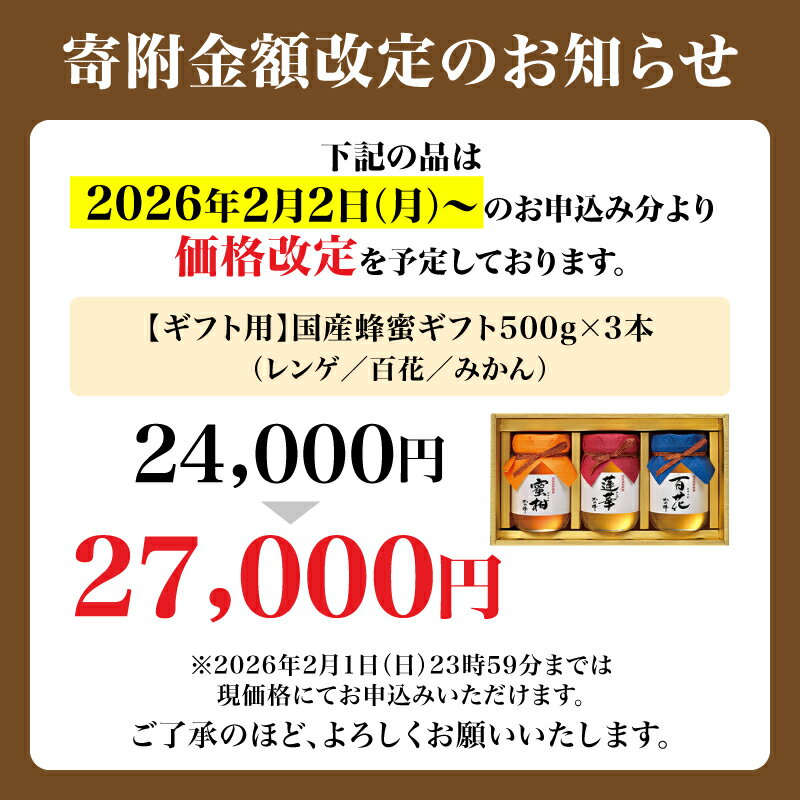 【ふるさと納税】【ギフト用】かの蜂 国産 蜂蜜 ギフト 500g×3本セット(レンゲ 百花 みかん) 国産 蜂蜜 はちみつ ハチミツ 詰合せ ギフト 贈り物 プレゼント お中元 御中元 誕生日 25000円