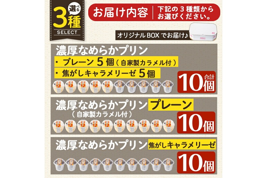 - a529 選べる冷凍プリン!濃厚なめらかプリン各種合計10個(プレーン&焦がしキャラメリーゼ計10個・プレーン10個・キャラメリーゼ10個)【かじはらプリン】姶良市 鹿児島県産 手づくり プリン専門店 ぷりん スイーツ おやつ デザート 洋菓子 冷凍 長期保存
