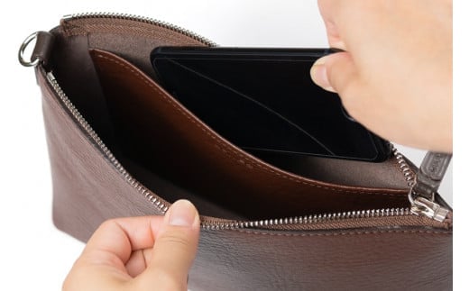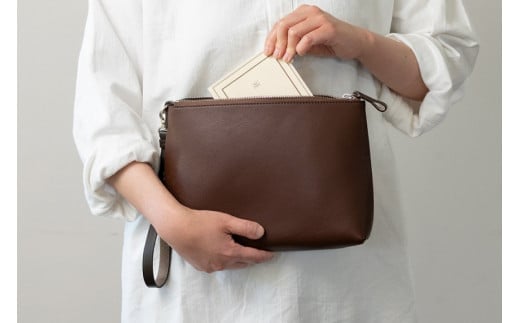 2つ折り牛本革セカンドポーチ【ポケットポーチ・プラス】(ダークブラウン)