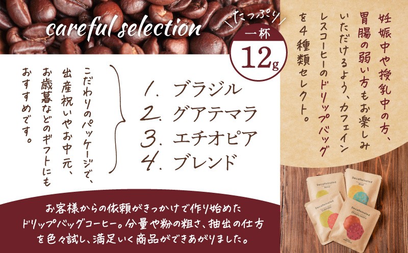 - 【人気の定期便 6ヶ月コース】ドリップバッグ カフェインレスコーヒー4種 A017-T03