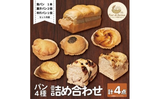 パン 4種 4個 詰合せセット 天然酵母 食パン 半斤パン チョコマーブル キャラメルナッツ 菓子パン クリームパン あんぱん メロンパン シナモンパン 菓子パン お菓子 おやつ 朝食 昼食 ランチ 間食 おやつ デザート スイーツ お取り寄せ グルメ 冷蔵 徳島県 阿波市 フィオーレデファリーナ