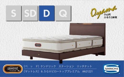 - BS13【シモンズ】ダブルベッド ケンドリックステーション/6.5GVピロートッププレミアムAA21221 リッチナット