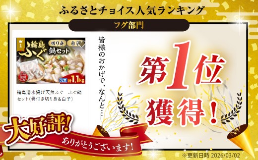 輪島港水揚げ天然ふぐ ふぐ鍋セット(骨付き切り身&白子)