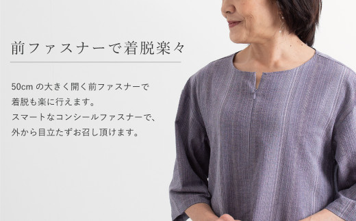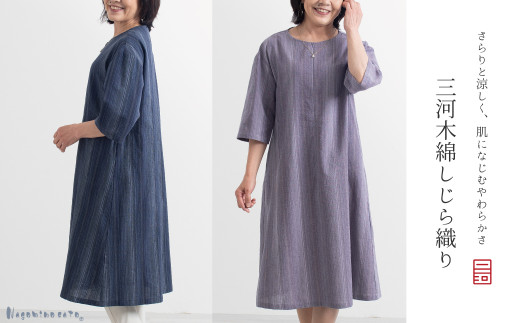 - 【G0540】【日本製】 三河木綿 しじら織り ワンピース:配送情報備考 L/ネイビー