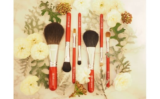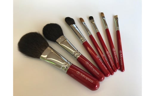 - 熊野化粧筆 レッドパール7本セット&携帯用ポーチB-J