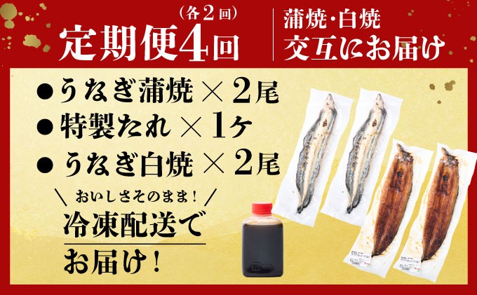 蒲焼き・白焼きを交互にお届け!国産うなぎ2尾【全4回定期便】 _ うなぎ 鰻 ウナギ 2尾 国産 高知県産 蒲焼き 白焼き かばやき 冷凍 うな重 ひつまぶし タレ ランキング 人気 4回 定期便 [yj058]