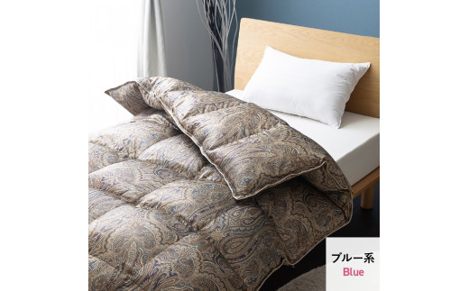- 【甲州羽毛ふとん】合掛けシルクプリント手選別アイダーダウン(セミダブル) ブルー系
